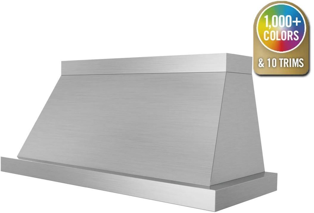 Metals & Strapping: Change your hood material from stainless steel to 14 different custom metals options including brass and copper. Plus, enhance your ventilation hood design by adding custom strapping and rivets to compliment other finishes in your kitchen.
