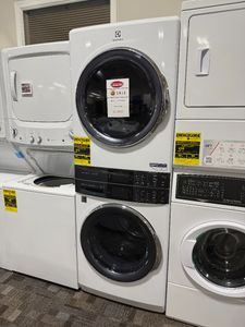OUTLET CENTER ITEM - Full-size and fully integrated front load electric/gas Electrolux Laundry Tower™ features a stacked design that takes up half the floor space, freeing up the laundry room for extra storage, all with an easy to reach control panel. The washer provides the most effective stain removal with SmartBoost® premixing technology.Read More