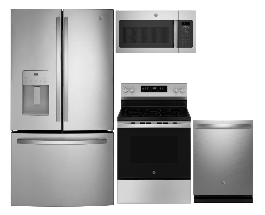 GE® 36 in. 25.6 Cu. Ft. Fingerprint Resistant Stainless Steel French Door RefrigeratorGE® 30'' Stainless Steel Freestanding Electric RangeGE® 24" Fingerprint Resistant Stainless Steel Top Control Built In DishwasherGE® Series 1.7 Cu. Ft. Stainless Steel Over The Range Sensor MicrowaveRead More