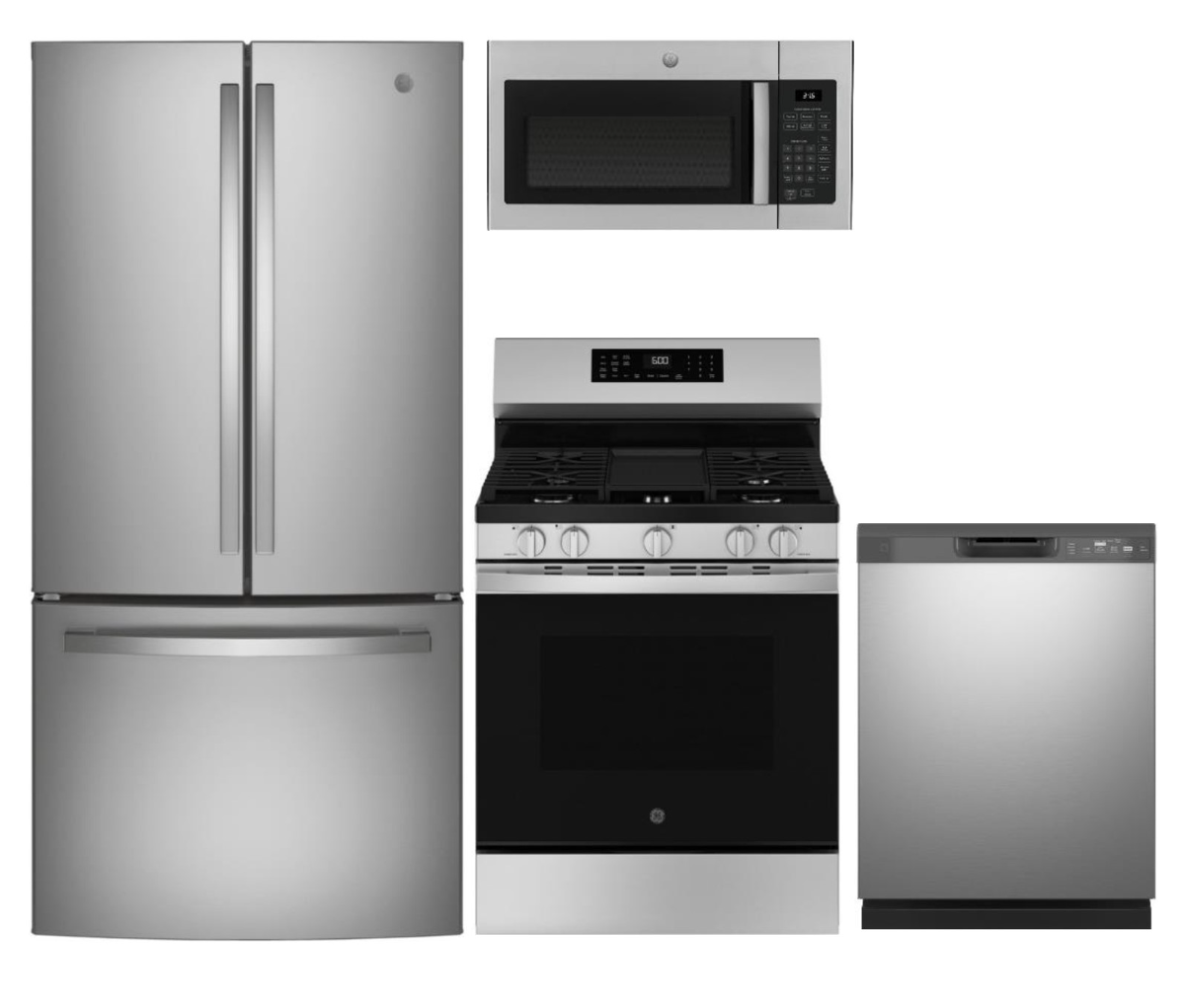 GE® 36 in. 27.0 Cu. Ft. Fingerprint Resistant Stainless Steel French Door RefrigeratorGE® 30'' Stainless Steel Freestanding Gas RangeGE® 1.6 Cu. Ft. Stainless Steel Over The Range MicrowaveGE® 24" Stainless Steel Front Control Built In DishwasherRead More
