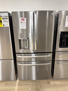 OUTLET CENTER ITEM - This GE Profile™ 4-french-door refrigerator with door in door features an adjustable temperature drawer with bin caddy, built-in Wi-Fi, LED light wall, soft-close drawers and hands-free autofill dispenser.Read More