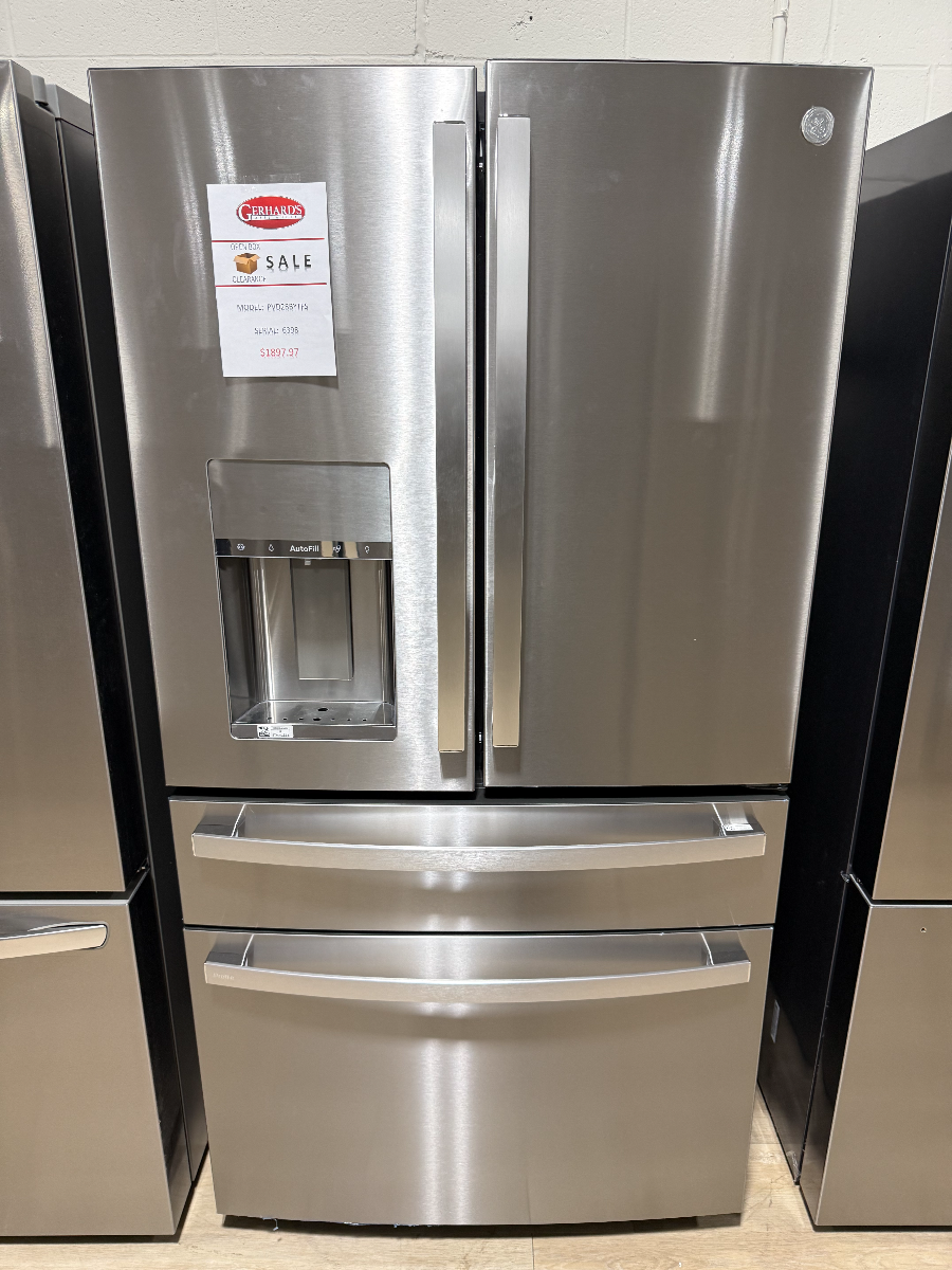 OUTLET CENTER ITEM - This GE Profile™ 4-french-door refrigerator with door in door features an adjustable temperature drawer with bin caddy, built-in Wi-Fi, LED light wall, soft-close drawers and hands-free autofill dispenser.Read More