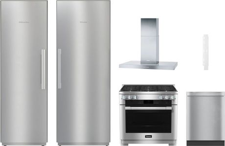 Miele 6 Piece Kitchen Package with Counter Depth Freezerless Refrigerator, Built In Column Freezer, Built-in Dishwasher, Pro Style Dual Fuel Range, Island Ventilation Hood, Side By Side Merging KitRead More