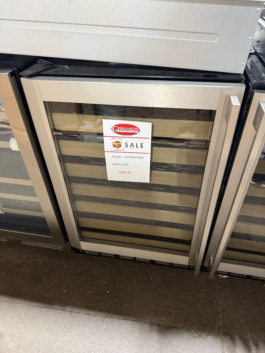 OUTLET CENTER ITEM - Full-extension sliding wine racks hold up to 57 bottles positioned either horizontally or vertically to maximize space and can be removed for larger bottles. Soft interior LED lighting automatically illuminates when the door is open but can be activated by an internal on/off switch.Read More