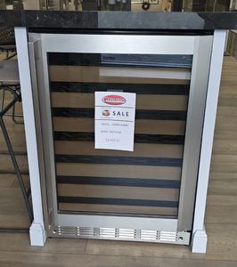 OUTLET CENTER ITEM - SPRINGHOUSE - Full-extension sliding wine racks hold up to 57 bottles positioned either horizontally or vertically to maximize space and can be removed for larger bottles. Soft interior LED lighting automatically illuminates when the door is open but can be activated by an internal on/off switch.Read More
