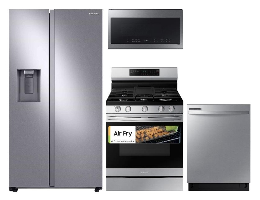 Samsung 27.4 Cu. Ft. Stainless Steel Side-by-Side Refrigerator Samsung® 24" Fingerprint Resistant Stainless Steel Top Control Built In Dishwasher Samsung 2.1 Cu. Ft. Fingerprint Resistant Stainless Steel Over The Range Microwave Samsung 30" Fingerprint Resistant Stainless Steel Smart Freestanding Gas RangeRead More