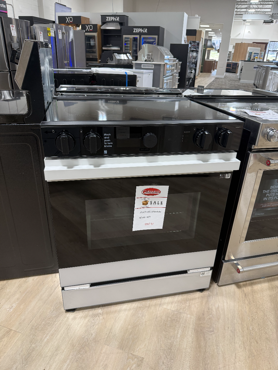 OUTLET CENTER ITEM - Samsung's smart electric range features a stylish and contemporary Bespoke design with a recessed handle that seamlessly blends into your kitchen for an elegant and minimalist look. Air Sous Vide locks in flavor and moisture so you can enjoy gourmet cooking at home and Air Fry built into the oven lets you cook healthier fried food.Read More