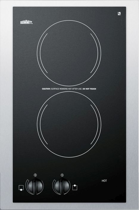 SUMMIT CR2110TK15 is a two-burner 115V electric cooktop that brings outstanding value to kitchen counters. 2 1200W burners, each with 6" diameter, manufactured for SUMMIT by E.G.O. of Germany, considered by many to be the finest in the world. Easy cleanup and elegant style on a smooth ceramic glass surface.Read More