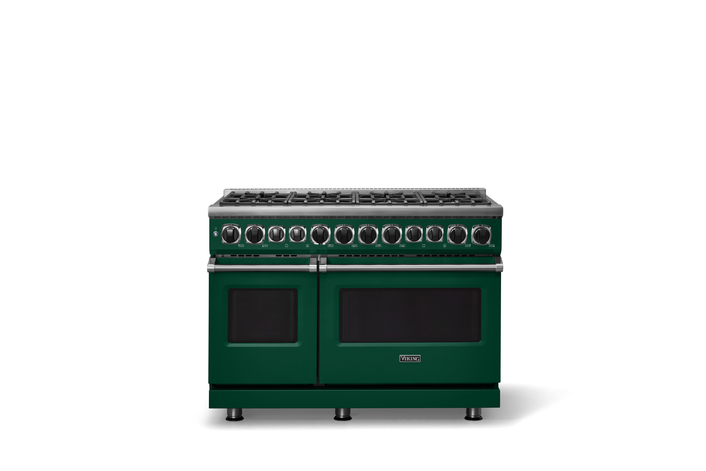Viking® 48" dual fuel range with eight sealed burners offers powerful gas cooking and electric oven precision. Designed for high performance, it provides exceptional heat control, durability, and ample space for professional or home kitchens.Read More
