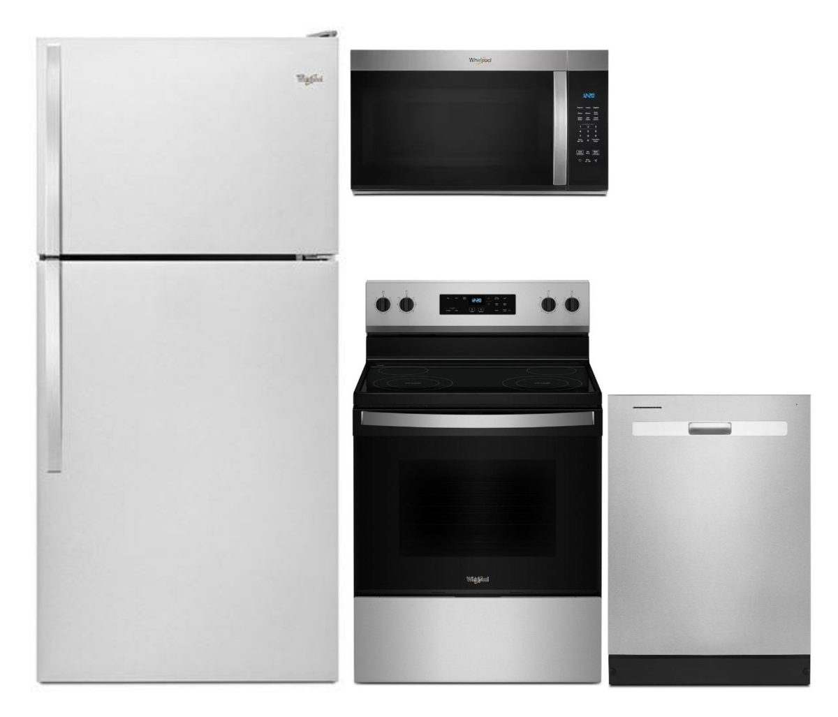Whirlpool® 30 in. 18.2 Cu. Ft. Monochromatic Stainless Steel Top Freezer RefrigeratorWhirlpool® 1.7 Cu. Ft. Stainless Steel Over the Range MicrowaveWhirlpool® 30" Stainless Steel Freestanding Electric RangeWhirlpool® 24" Finger Print Resistant Stainless Steel Top Control Built In DishwasherRead More