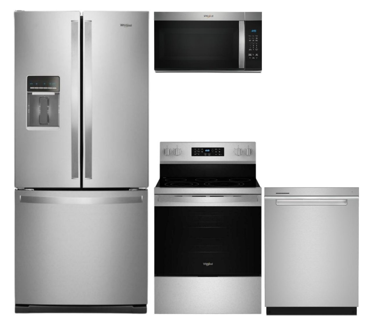 Whirlpool® 30 in. 19.0 Cu. Ft. Fingerprint Resistant Stainless Steel French Door RefrigeratorWhirlpool® 30" Fingerprint Resistant Stainless Steel Freestanding Electric RangeWhirlpool® 1.7 Cu. Ft. Fingerprint Resistant Stainless Steel Over the Range MicrowaveWhirlpool® 24" Fingerprint Resistant Stainless Steel Top Control Built In DishwasherRead More