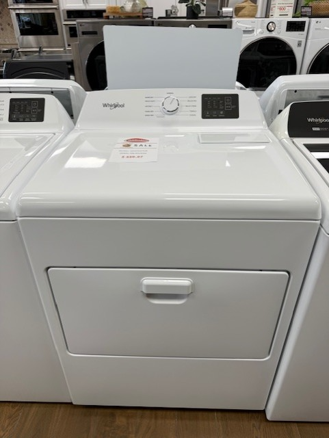 OUTLET CENTER ITEM - DOYLESTOWN - Choose how you handle each hamper with the Whirlpool® Electric Dryer with AutoSensing. This dryer has a built in sensor that measures temperature levels to help prevent over drying and automatically stop the cycle when the load done. Wrinkle Assist™ option minimizes wrinkles with continued tumbling after the cycle ends, and Quick Dry allows you to complete small loads in less time.Read More